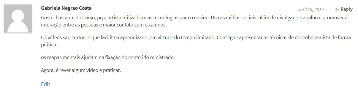 "O seu curso curso é muito bom, o curso online de desenho é melhor que um presencial"
